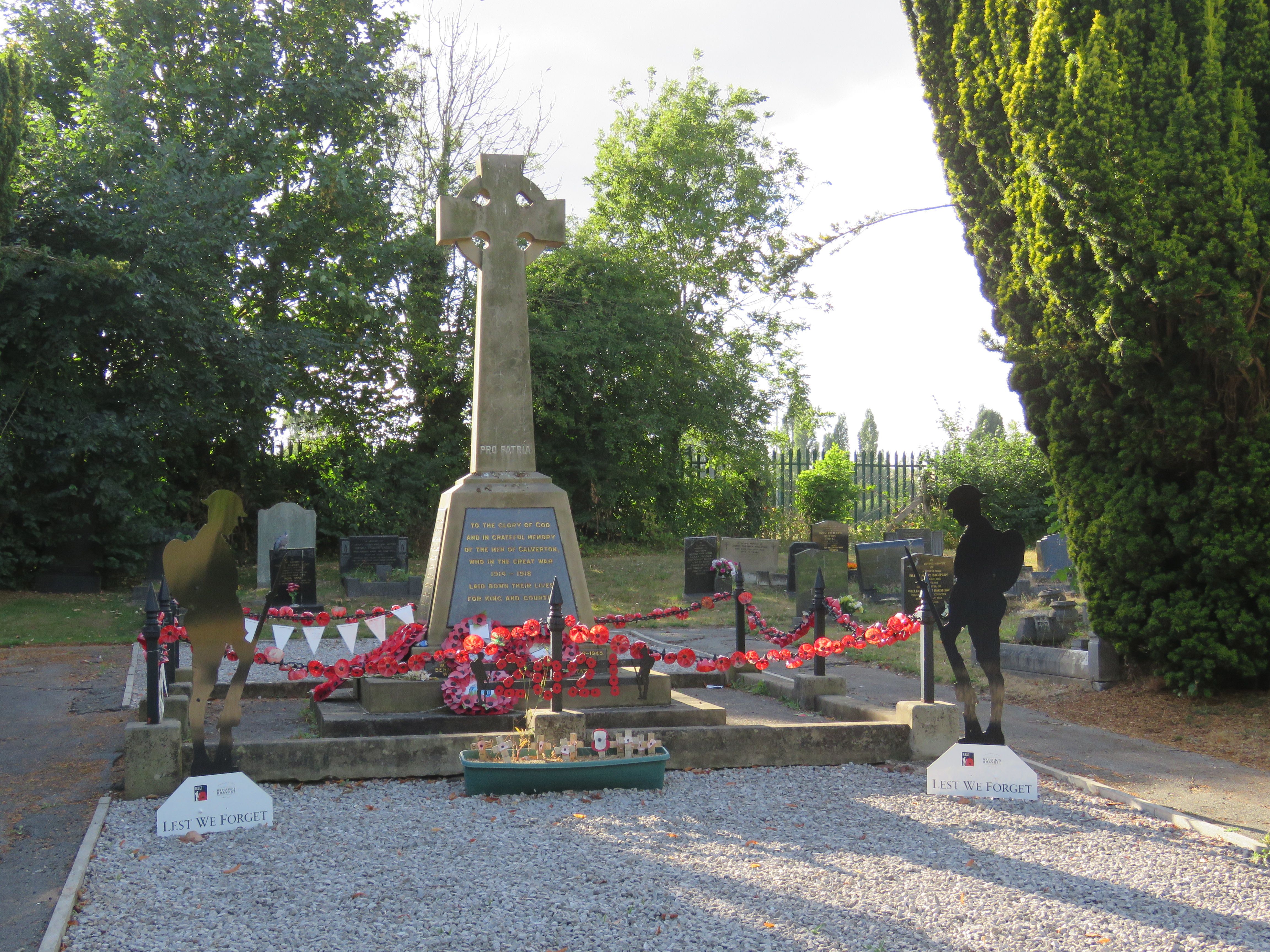 Large cross within a square chained enclosure, located in the centre of the older part of the cemetery. Originally erected for World Ward 1 a plaque has been added to the base at the front commemorating 8 men who fell in the Second World War 1939-1945