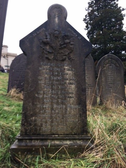 The headstone marking the grave in Nottingham General Cemetery of Vernon's maternal grandparents, Thomas and Sarah Woolley, also commemorates their grandson, Vernon: 'In loving memory of Thomas Woolley who died May 9th 1884 aged 54 years. Also of Sarah, his wife who died January 14th 1884, aged 52 years. Vernon Digby Bignall of the KOYLI, grandson of the above, killed on the field of honour, September 16th 1914, aged 27 years. 'Our days on earth are as a shadow and there is none abiding'. Also [daughter] Charlotte Bignall [remainder of inscription below ground]'. Quotation: KJV. 1 Chronicles 29:15.