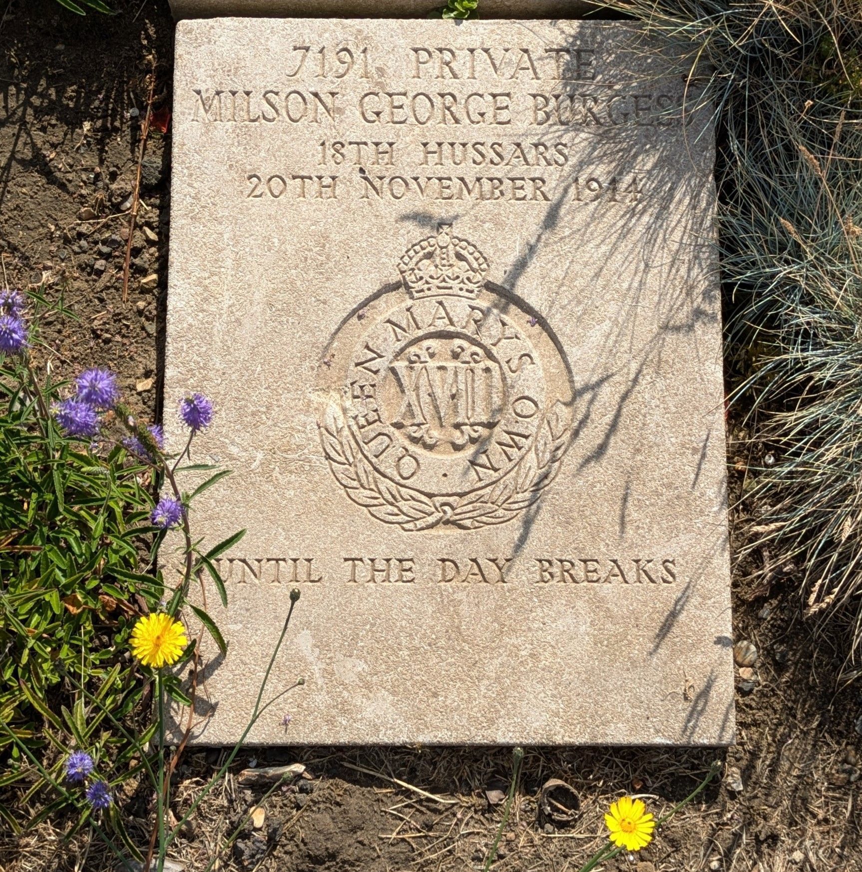 Private Milson George Burgess enlisted at Mansfield whilst residing at Mansfield, he served with the 10th battalion The Prince of Wales’s Own Hussars. He died of wounds on 20th November 1914, he is buried in Bouglogne Eastern Cemetery, France.