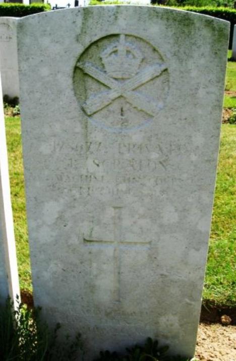 Private Robert Scraton enlisted on 21st February 1916 at Southwell and initially served with the service number 34295 in the 7th battalion Sherwood Foresters (Nottinghamshire and Derbyshire Regiment). He served during the Irish Rebellion and landed in France on 25th December 1916. He caught trench fever in June 1917 and during convalescence he transferred to the 47th Company Machine Gun Corps. He returned to France on 17th February 1918 and was killed in action on 3rd of June 1918, he is buried in the Franvillers Communal Cemetery Extension, Somme, France.