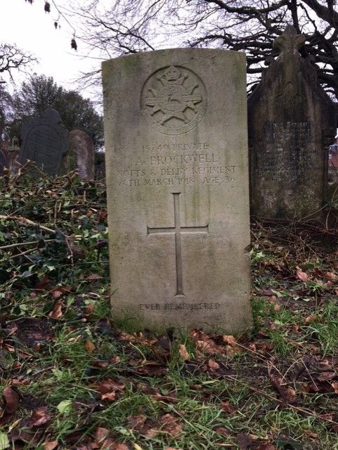 Nottingham Evening Post, 'Roll of Honour', 23 March 1918: 'Brockwell. On March 20th by accident at Grantham, Private Alfred, husband of Ada Brockwell, 5 Alpine Terrace, Hunt Street. Funeral General Cemetery.'