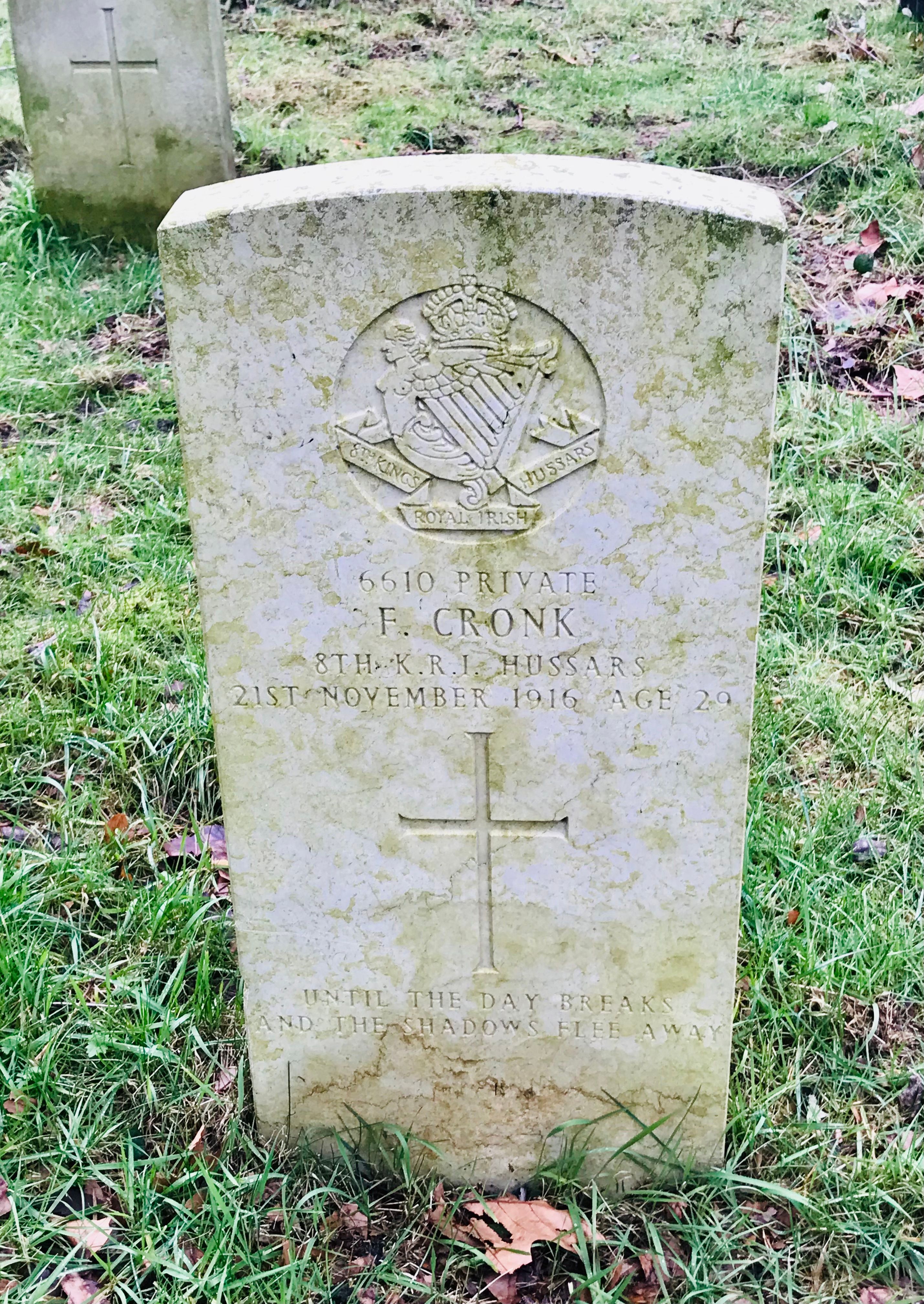 Frederick Cronk enlisted at Nottingham and served with the 8th (King's Royal Irish) Hussars.