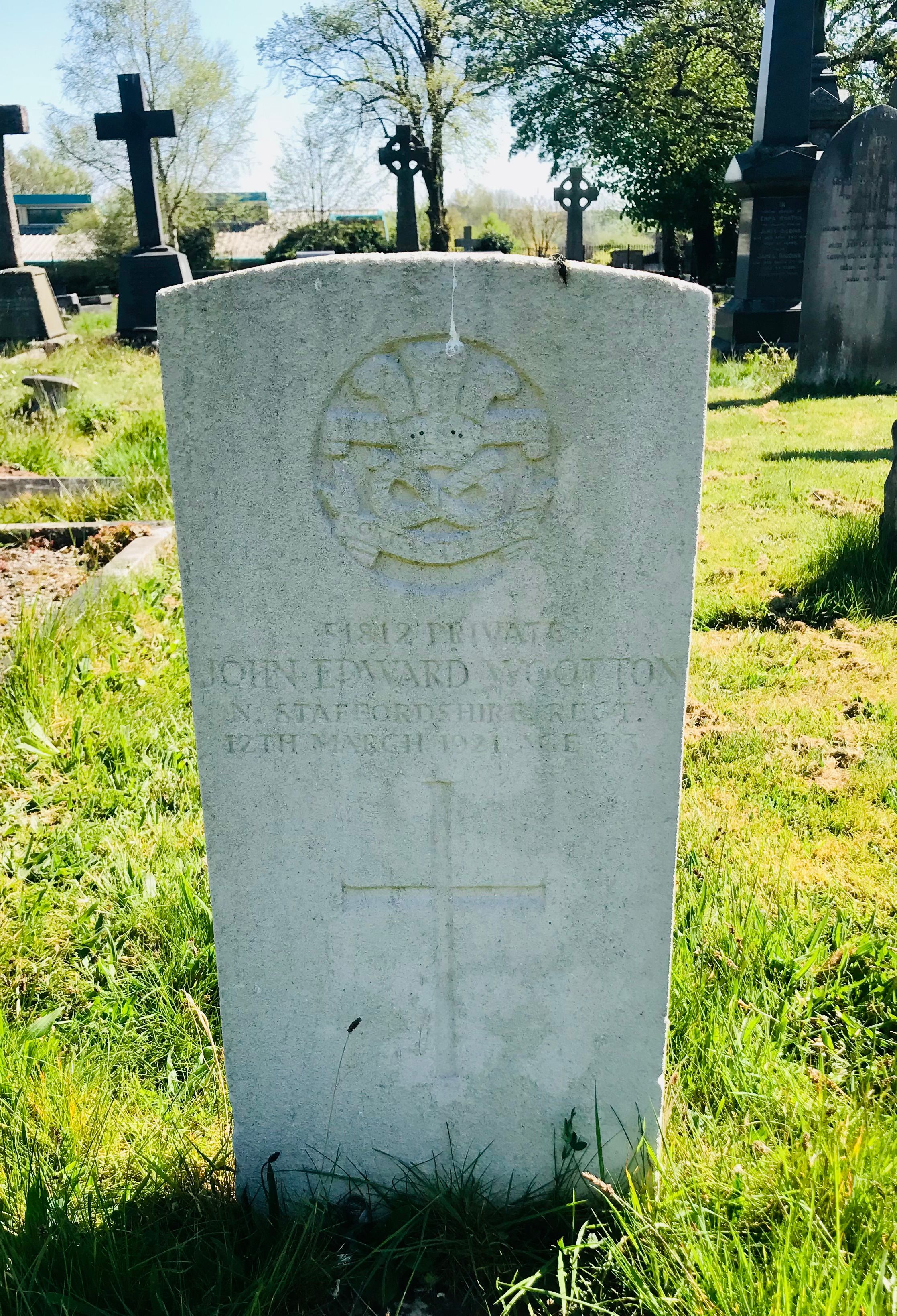 Service Number : 51812, Private, John Edward Wooton served with the 3rd Battalion (The Prince of Wales's Own),North Staffordshire Regiment, died on the 12th March 1921, aged, 33 years old at : Wortley, West Riding of Yorkshire.