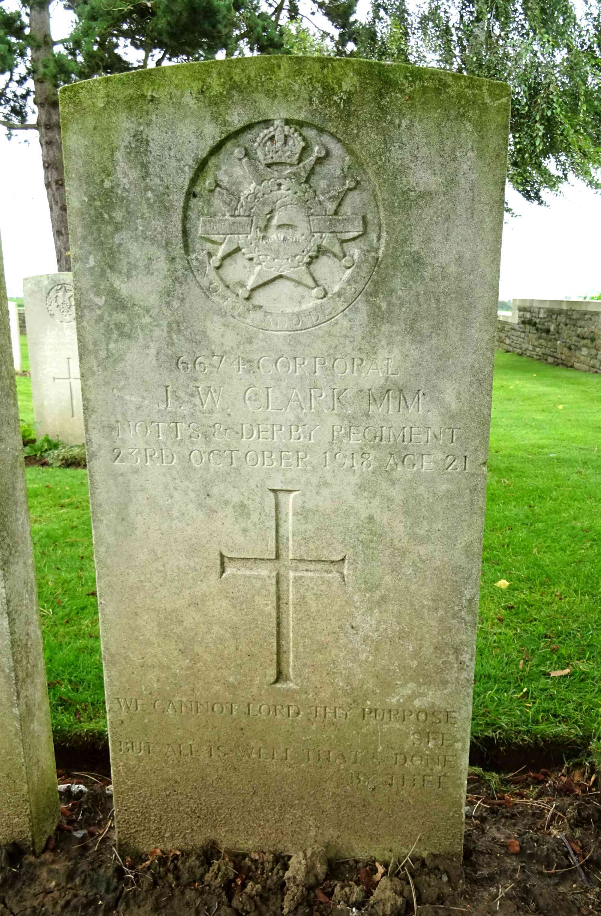 John attested on 28th August 1914 he gave his age as 18 years and 267 days and that his occupation was that of a clerk. He served on the home front from 28th August 1914 until 21st August 1915. .He joined the British Expeditionary Force on 27th August 1915. and served on the Western Front until 8th November 1917 during which time he was awarded the Military Medal on 1st January 1917. He was promoted to Corporal on 9th May 1917 . His service record shows he then served in Italy from 9th November 1917 he returned to France on 25th August 1918, he was killed in action on 23rd October 1918 during heavy Gemrna shelling whilst the battalion was moving forward for the attack at Fontaine-au-Bois, France.