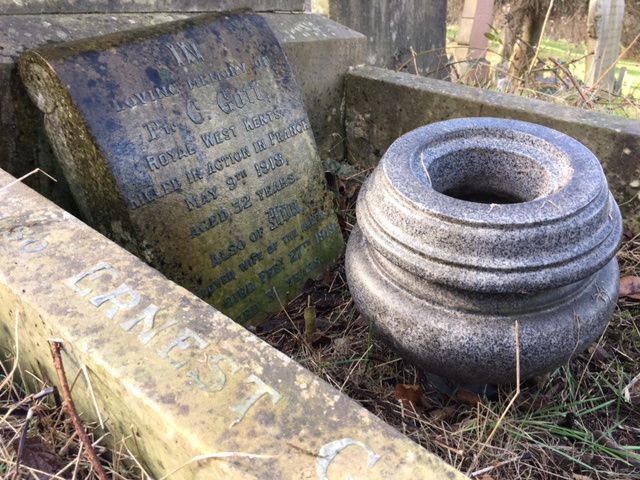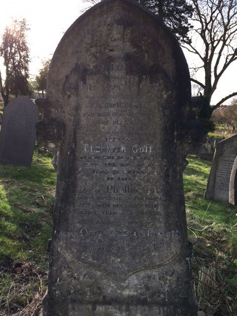 Nottingham General Cemetery, family grave, headstone inscription: ‘In loving memory of Ruth, dearly loved wife of JW Green, who died Sept. 21st 1918, aged 40 years. Rest after weariness, peace after pain. And of Cecil Gott, killed in action in France, May 9th 1918, aged 33 years. He nobly answered duty’s call. Also of Ada Gott, dearly loved wife of the above, who died Feby, 27th 1919 aged 31 years. To be reunited when the morning dawns and the shadows flee away.’