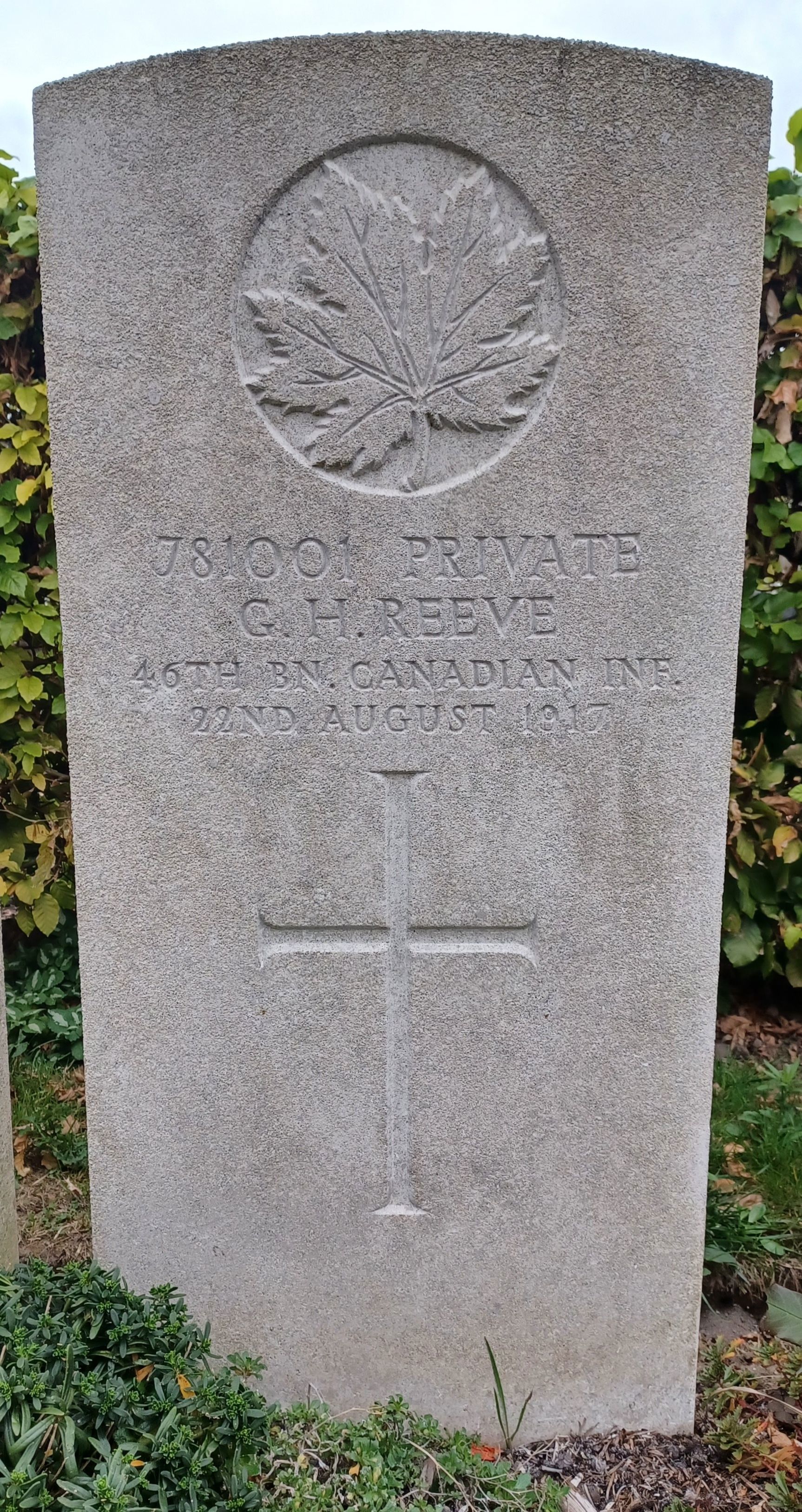 Probate: Reeve George Henry of White Bear Saskatchewan Canada died 22 August 1917 in France on active service Administration (with Will) London 15 January to Hannah Reeve (wife of Edward Reeve). Effects £50.