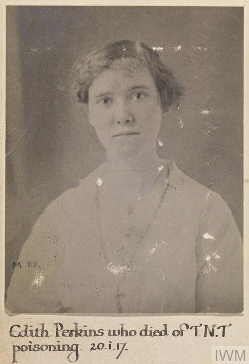 'The death of munition-worker named Edith Perkins, aged 21, which took place at the Nottingham General Hospital on Saturday, [20th January 1917] formed the subject of an inquiry by the City Coroner C. L. Rothera'