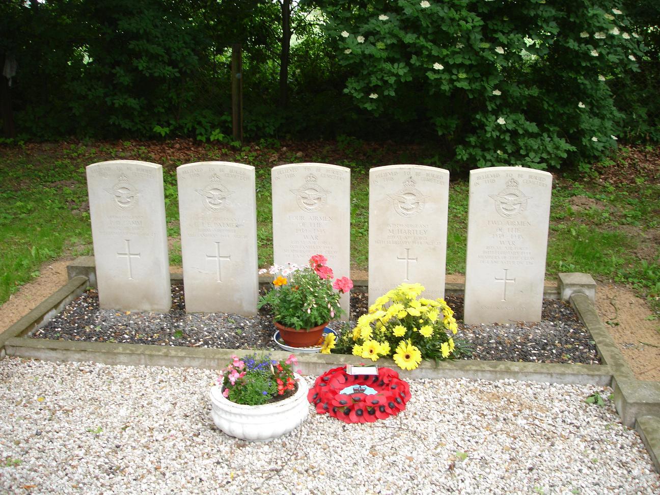 Keith Baggaley, whose mother was Martin Hartley's cousin, noted 'In July 2009 my wife and I visited Martin's grave in Retzow and laid a wreath of poppies for all the crew of his aircraft. It was touching to see that local people cared for the grave.'