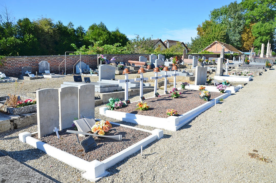 Six crew (1 RAF, 4 RAFVR, 1 RNZAF) of an Avro Lancaster of 138 Squadron, killed on 9 August 1944, are buried in the same cemetery (Coll. Grave 22).