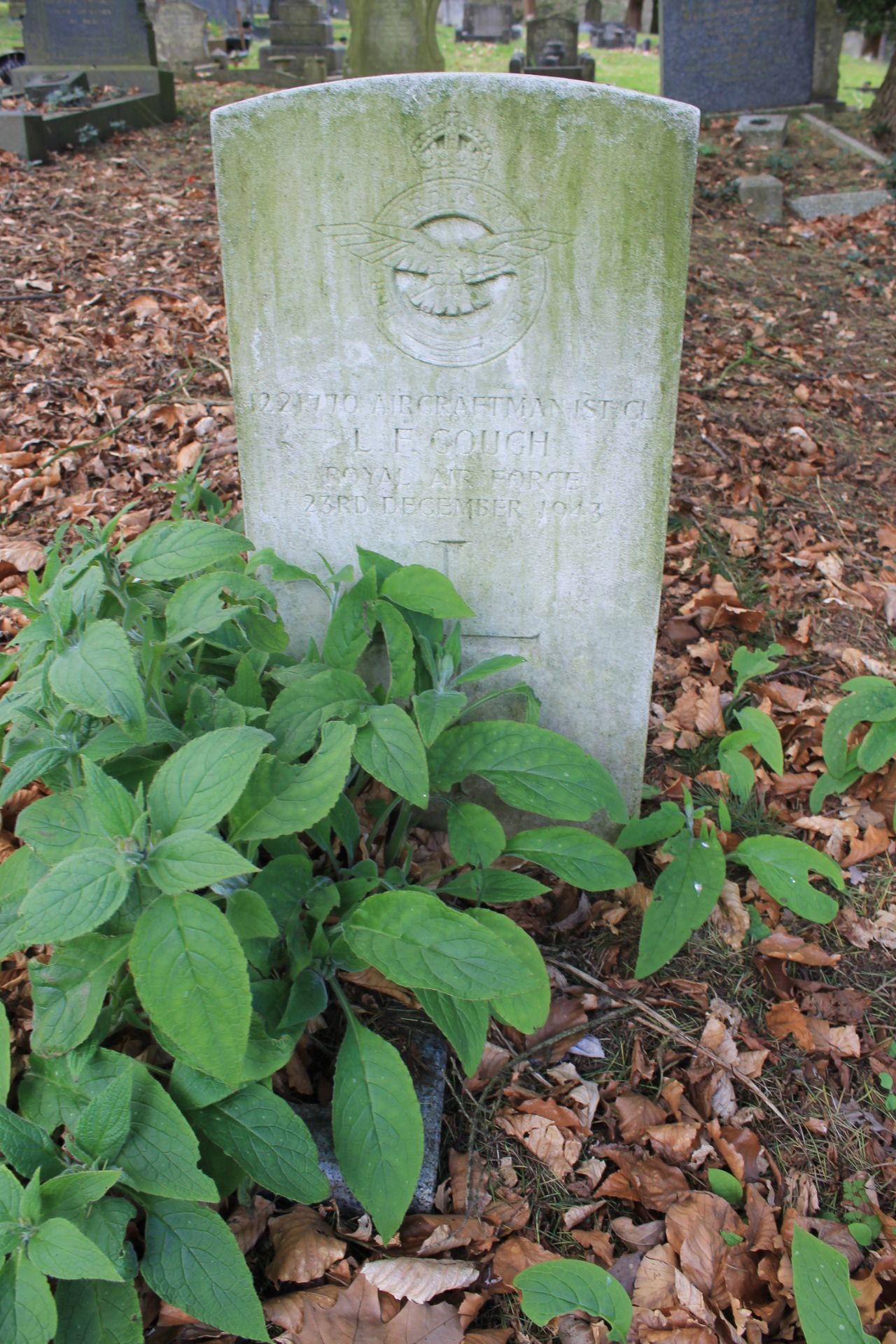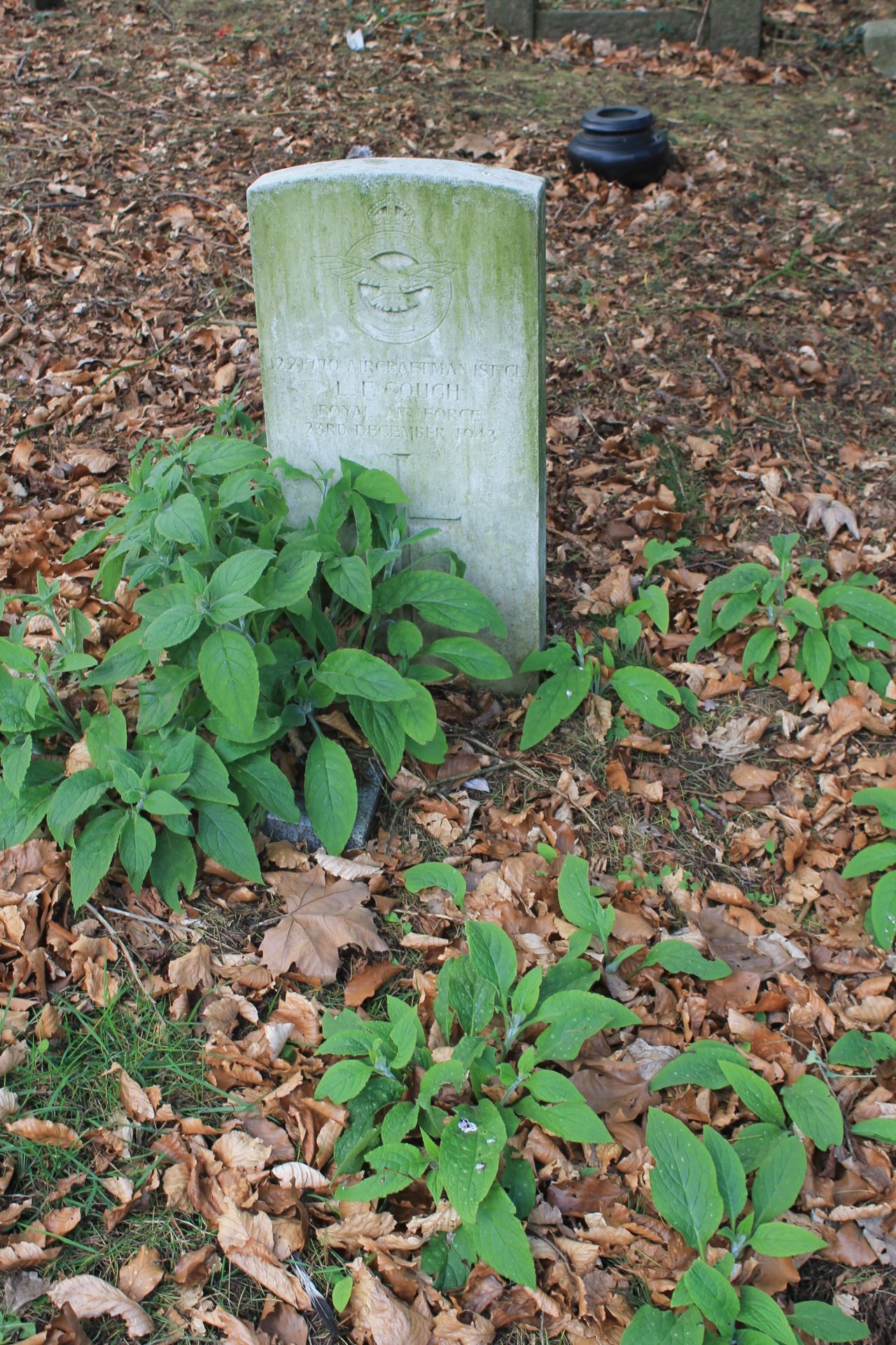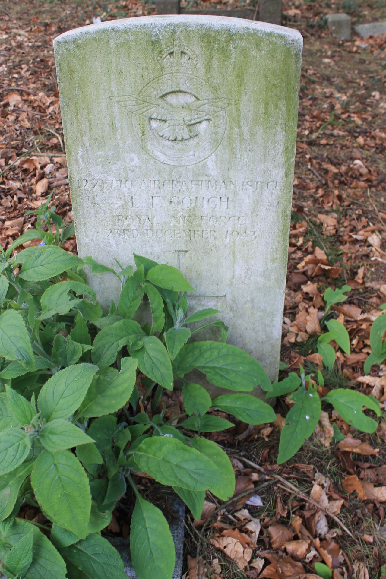 Gough: In loving memory of AC1 Lawrence Frederick Gough killed on active service 23rd December 1943. Always remembered by his three sisters, Nellie, Florrie and Beaty and their families.
