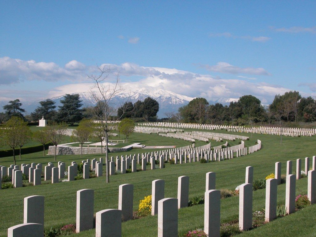 CWGC History of the Cemetery: 'On 3 September 1943 the Allies invaded the Italian mainland, the invasion coinciding with an armistice made with the Italians who then re-entered the war on the Allied side. Allied objectives were to draw German troops from the Russian front and more particularly from France, where an offensive was planned for the following year. Progress through southern Italy was rapid despite stiff resistance, but by the end of October, the Allies were facing the German winter defensive position known as the Gustav Line, which stretched from the river Garigliano in the west to the Sangro in the east. By 4 November, the Allied force that had fought its way up the Adriatic coast was preparing to attack the Sangro river positions. A bridgehead had been established by the 24th and by nightfall on the 30th, the whole ridge overlooking the river was in Allied hands. The site of this cemetery was selected by the 5th Corps and into it were brought the graves of men who had died in the fierce fighting on the Adriatic sector of the front in November-December 1943, and during the static period that followed.' (www.cwgc.org)