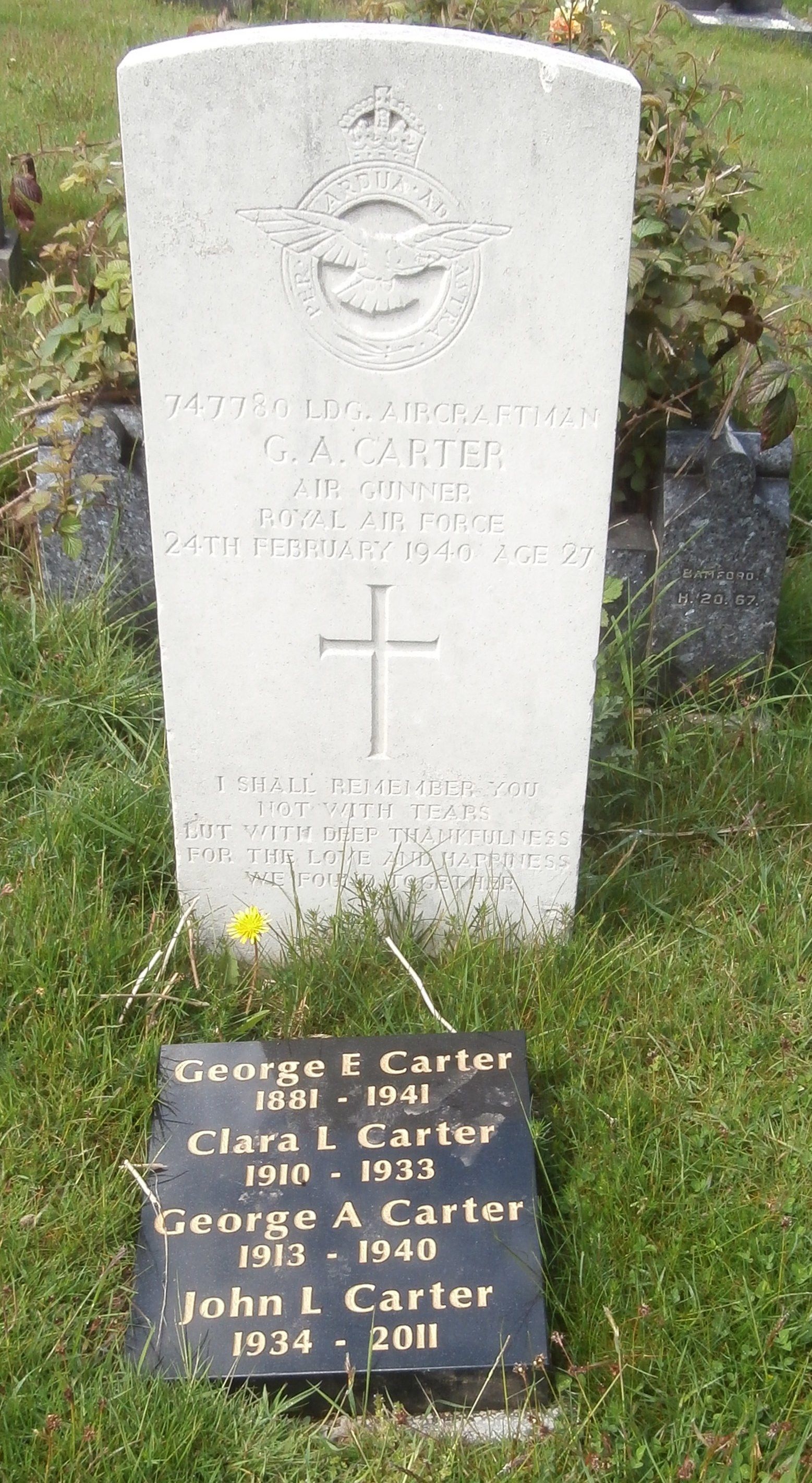 He was the son of George Edward and Ida Mary Carter and the brother of Minnie Ida, Clara Lily, Mabel E and Tom Carter. In 1921, they lived at 73, Waterloo Promenade, Nottingham. He was the husband of May Carter.