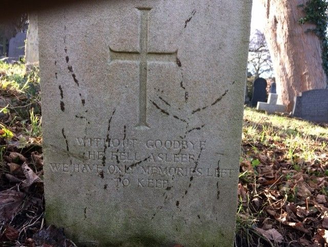 CWGC headstone personal inscription: 'Without goodbye he fell asleep we have only memories left to keep'