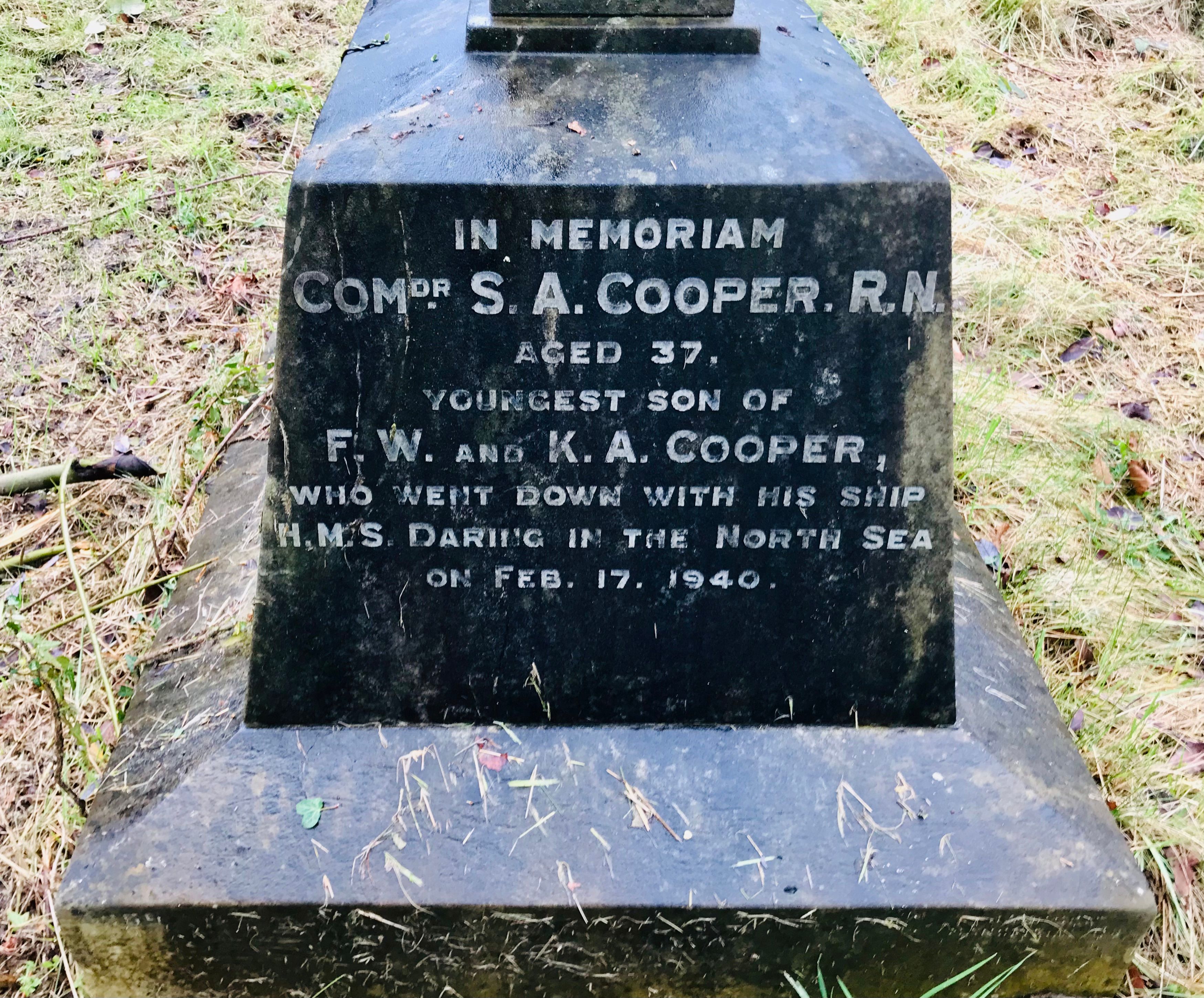Commemorated : Portsmouth Naval Memorial as : Commander, SA Cooper.