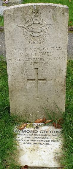 Vera (née Crooks) Clowes was the daughter of Fredrick R and Hetty Crooks and the sister of Nora A and Raymond Crooks. In 1939, they lived at 100, Little Hallam Lane, Ilkeston. Vera Crooks and Charles R Clowes were married at Ilkeston during the Spring of 1943 and it is understood they were honeymooning at Torquay when Vera was killed during an air raid.