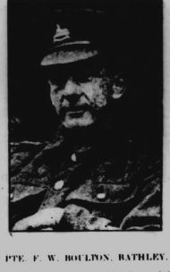 Youngest son of Frederick Wilson Boulton & Elizabeth Boulton, 29 Cartergate, Newark. Helped his father in the delivery of milk in Newark for ten years. Had only returned to France eight weeks after having been injured and in hospital at Aberdeen. A former scholar at Guildhall Wesleyan school.