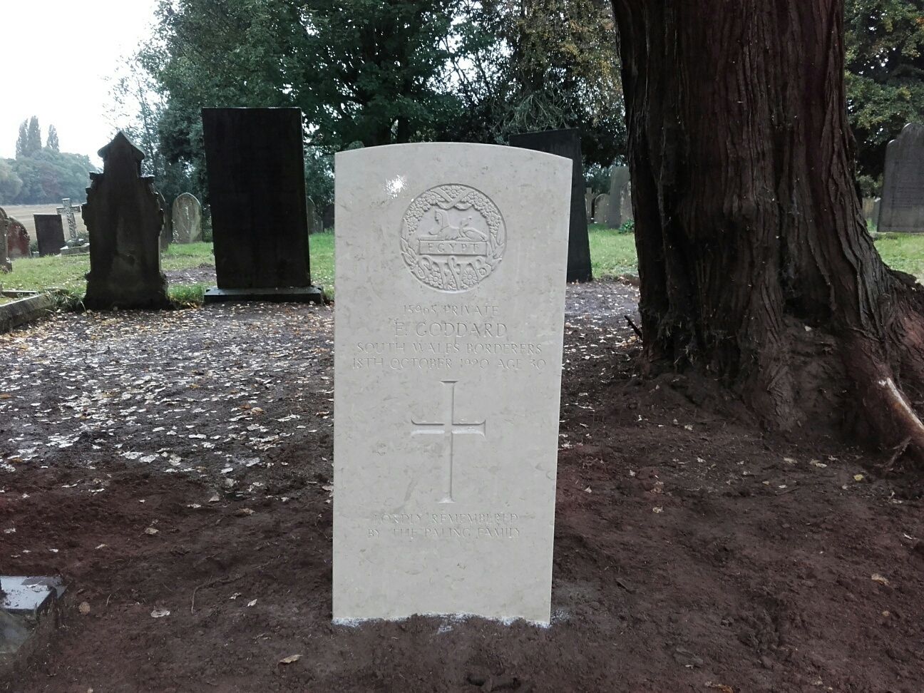 Private Ernest Goddard enlisted on 3rd September 1914, he served with the 3rd battalion South Wales Borders. He landed in France on 5th September 1915 and was discharged from the Army on 4th September 1918 no longer fit for war service and was awarded a Silver War Badge number 15965. He was living at Pentrepoe, Monmouthshire at the time of discharge. He died on 18th October 1920 of tuberculosis and is buried at Lowdham St Marys churchyard.